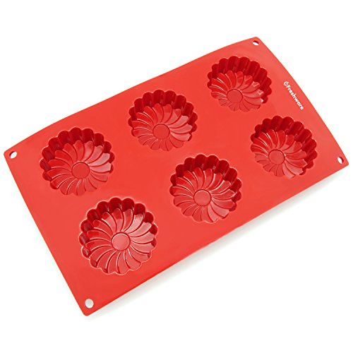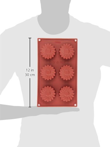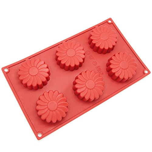 Freshware SL-129RD 6-Cavity Silicone Daisy Flower Muffin, Brownie, Cornbread, Cheesecake, Panna Cotta, Pudding, Jello Shot and Soap Mold