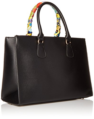 -. Feature : Structured mid-sized handbag in smooth faux-leather featuring contrast edging and patterned scarf wrapped at handle / Removable/adjustable cross-body strap / Pockets: 2 interior zip, 3 interior slip