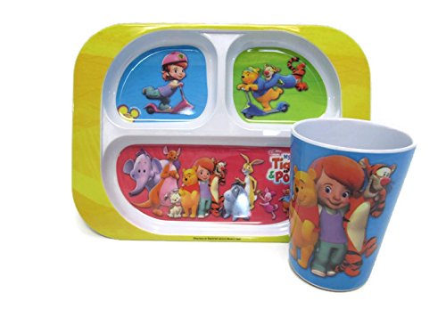 Plate with 3 Compartments (10" x 7.5") Cup (4.5" Tall) Dishwasher Safe Non Microwaveable Brand : My Friends Tigger & Pooh Item model num : 1 MPN(PartNumber) : 1 EAN : 0742572262492 Product Dimensions(LxWxH) :