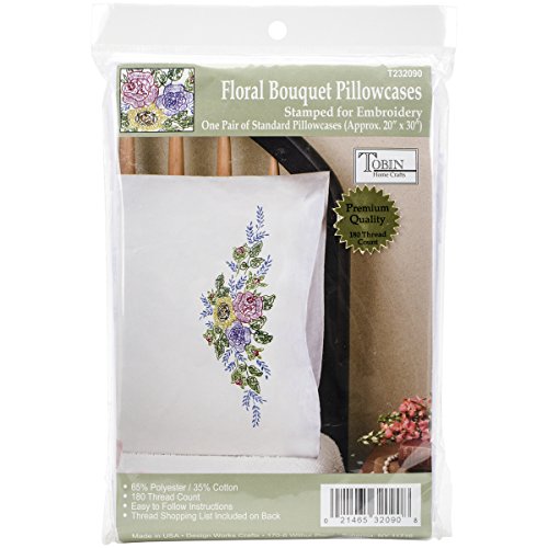Design Works Crafts Stamped Embroidery Floral Bouquet Pillowcases (Set of 2), 20 by 30"