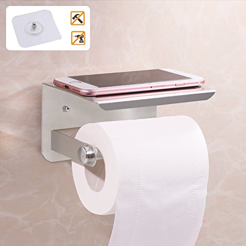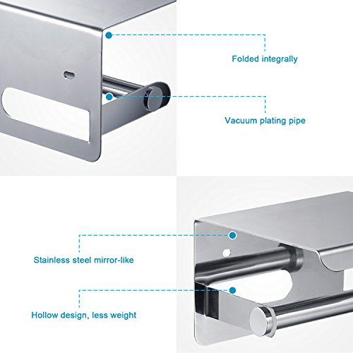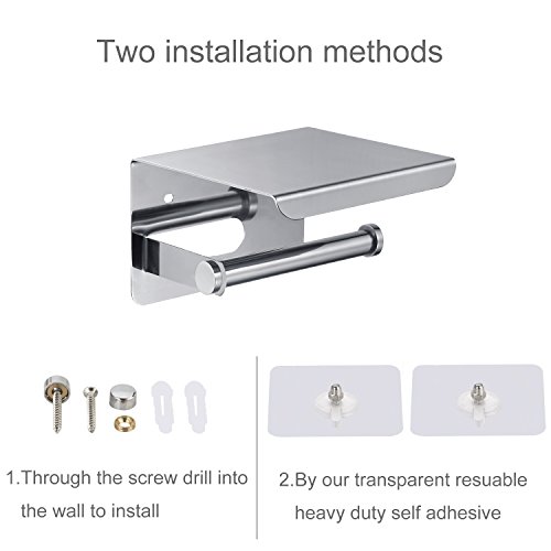 Startostar Wall Mount Toilet Paper Holder with Cell Phone Storage Shelf Rack, Polished Stainless Steel Tissue Dispenser for Bathroom and Restroom
