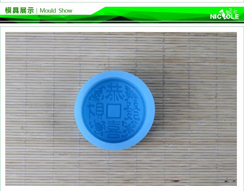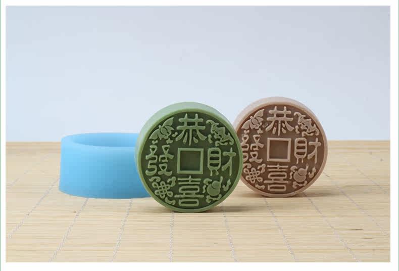 圆形手工皂模具 恭喜发财香皂模具 香皂精油皂硅胶模具 矽胶