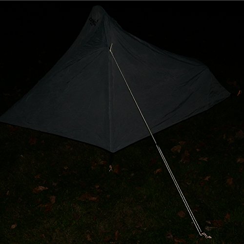 DUAL REFLECTIVE STRIP – This highly reflective strip is woven into the outer surface of the rope in both directions to ensure the highest nighttime visibility possible. You'll never trip over a guyline at night again.
