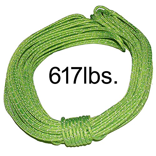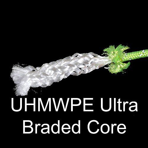 HIGH STRENGTH – Incredible 617 lbs breaking strength! This guyline has an inner core made of UHMWPE (Dyneema, Spectra) giving it incredible strength to weight ratio. You get more strength without the bulk and weight of traditional 550 paracord.