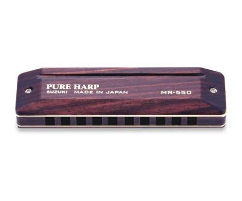 Studio : Suzuki Publisher : Suzuki Binding : Electronics Product Description Using the most seasoned tonewoods and unique construction technique, the MR-550 Pure Harp is the result of Suzuki"s research and development of unique professional grade harmonicas. Rosewood has been sought after by top musicians from all over the globe, from classical guitar players to top violinists. This wood allows unique tonal qualities and when used in harmonica construction, gives a warmer tone. Using Rosewood can produce a high velocity of sound and a broad range of mid and low overtones. These "lows" help to create a complex bottom end which imparts a richness to the overall tone of the harmonica.The redesigned reeds, which are the heart of this Suzuki harmonica, have been produced with the advanced player in mind. However, this reed design makes it easier to play the harp chromatically, right out of the box! The Suzuki Reed plates allow ease of play, especially with overblow and overdraw techniques.The Suzuki MR-550 is an all-hardwood harmonica; even the covers are rosewood! It gives the harp a rich, dark and bluesy tone that will have your audience begging for more. The richness of this harmonica is unmatched and if you are looking for a traditional sound, here it is! 0