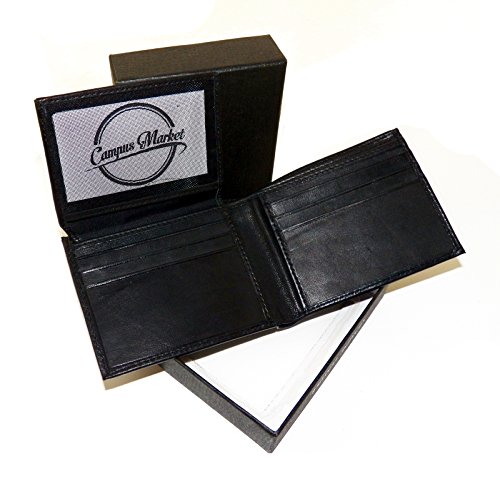 Campus Market works with first class raw materials and skilled artisans who handcraft each one of the leather goods. Professional workmanship and outstanding design founded in the reputation of Made in India, the leather goods are imported to Campus Market facilities. These bifold mens wallets is made Sheep Leather a economical substitute for buckskin that provides a suppleness and comfortable soft texture. These cool mens wallets will feature interior pockets and slots made of nylon fibers and the window mesh made out of plastic. With fantastic sew work there are about 8 stitches per inch. This mens credit card wallet also features a hefty nine credit card slots, two side slots, one ID Window, and two bill pockets. Mens front pocket wallets like this one are remarkable thin for the functionality featured within. The wallet will comfortably fit in your front pocket. This item comes in a Campus Market Gift Box made of sturdy cardboard with a pebbled leather design. The gift box has a thin plastic window view.