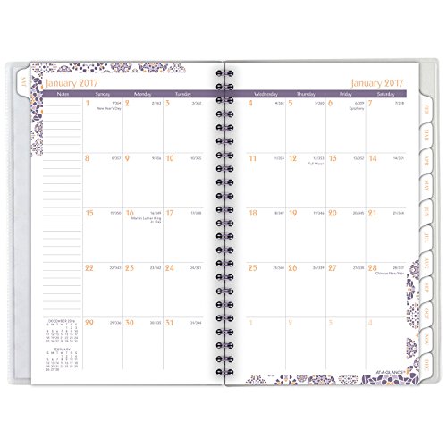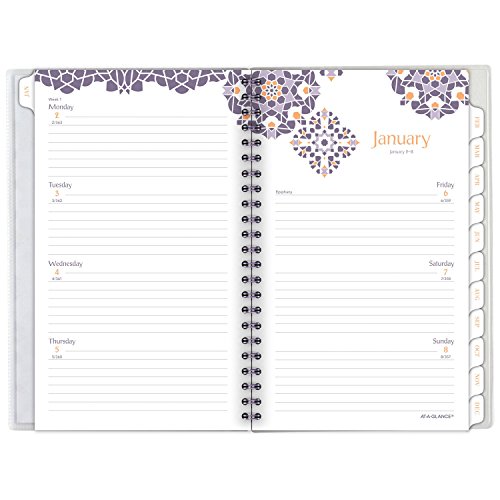 -. Binding : Office Product -. Brand : At-A-Glance -. EAN : 0038576364479 -. Feature : Abby, geometric pattern design in a mix of dark and light purple decorates the front cover. Customizable clear front pocket also provides the ability to insert a personalized cover page. Planner includes 12 months January - December. / One week per two page spread includes an equal amount of ruled planning space for each day. Abby geo design is prominently featured on the top of right page with the month and weekly dates P.R.Inted in orange and purple. / One month per two page spread features unruled daily blocks to freely write in reminders on key dates. Monthly spreads are tabbed with a notes column and past/future month reference calendars. -. Label : ACCO Brands -. Manufacturer : ACCO Brands -. Model : 184-201-17 -. MPN : 184-201-17 -. NumberOfItems : 1 -. PackageQuantity : 1 -. PartNumber : 184-201-17 -. ProductGroup : Office Product -. ProductTypeName : OFFICE_PRODUCTS -. Publisher : ACCO Brands -. Studio : ACCO Brands -. Title : AT-A-GLANCE Weekly / Monthly Planner / Appointment Book 2017, Customizable, 4-7/8 x 8", Abby (184-201) -. UPC : 038576364479