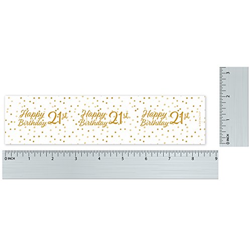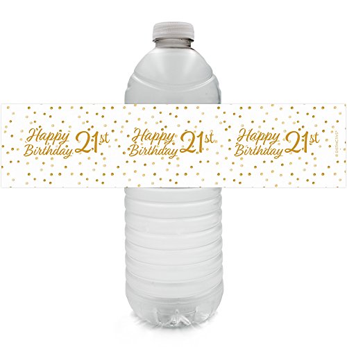 21st Birthday Party Water Bottle Labels - White and Gold (24 Count)