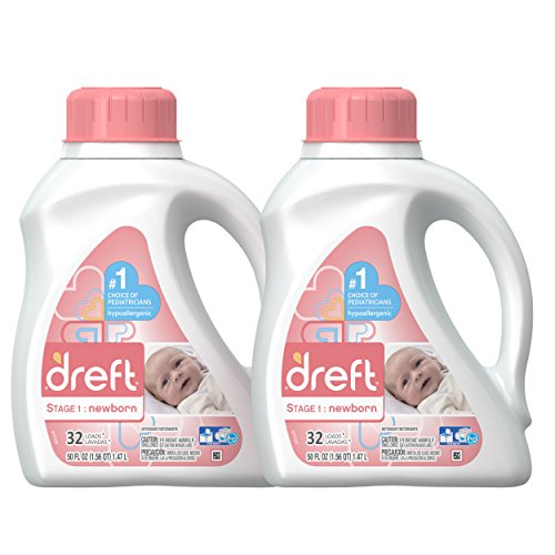 Dreft Stage 1: Newborn Hypoallergenic Liquid Baby Laundry Detergent (HE), 50 Ounces (32 Loads), 2 Count