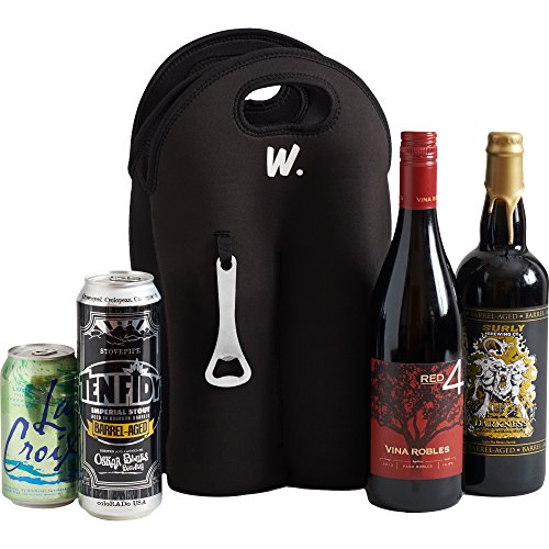 Insulated Beer Bottle 4 Pack Carrier with Opener, Fits 750ml, 22oz Bottles, Thick Neoprene Bag, Wine Tote