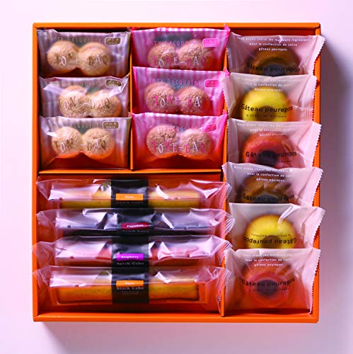 原材料:卵白、砂糖、マーガリン、アーモンドパウダー、小麦粉、蜂蜜、植物油脂、いちごジャム、レモンジャム、全粉乳、洋酒、乳糖、ココアパウダー、いちご、カカオマス、ココアバター、コーヒー、いちご濃縮シロップ、澱粉、澱粉分解物、ラズベリー、食塩、ラズベリー濃縮シロップ、レモンパウダー、果糖ぶどう糖液糖、水飴、寒天、トレハロース、ソルビトール、セルロース、香料、乳化剤、膨張剤、着色料(クチナシ、カラメル、紅麹、紅花黄、赤102、カロチン)、酸味料、増粘多糖類、pH調整剤、乳酸Ca、(原材料の一部に大豆を含む)