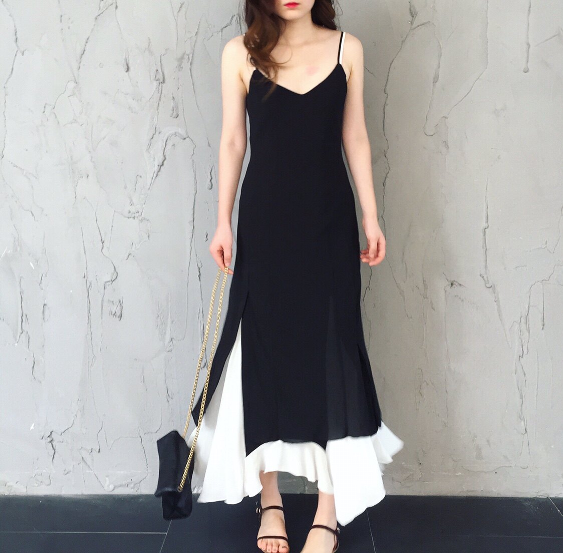 腰部间有压褶的收腰设计,很费料子黑白2层叠加