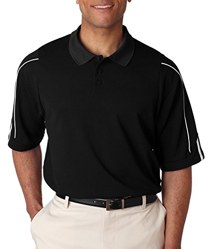 Binding : Apparel Product Description 5.1 oz., 100% polyester moisture management pique wicks moisture away from skin for quick evaporation rib knit collar contrast heat-sealed adidas performance logo on back neck set-in, open-hem sleeves contrast 3-Stripes piping detail on sleeves side vents 0