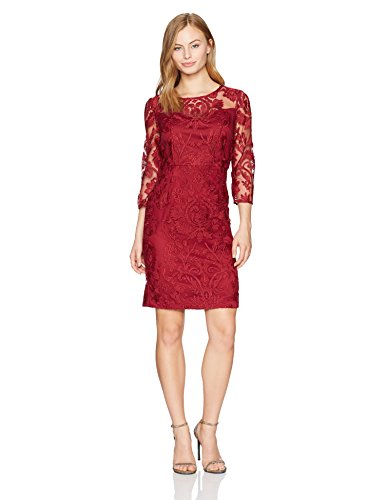The luxurious embroidery on our classic, shift cocktail dress elevates this look to be worn to your next special occasion. Our stunning embroidered dress features an illusion neckline and sleeves is a great choice for a mother of the bride or groom, guest of wedding, or formal event.Feature