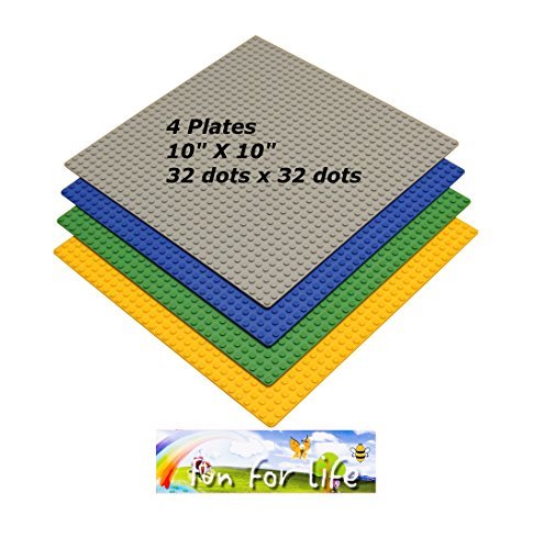 -. Title : L.E.G.O-Compatible Brick Building Base 10'' x 10'' Green, Grey, Orange, and Blue 4 Baseplates in a Set By Brand FUN FOR LIFE