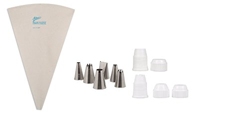 Ateco Cake Decorating kit, Reusable 18" Pastry Bag With 6 Piece Assorted Pastry Tube Tips, One Large And One Medium Coupler