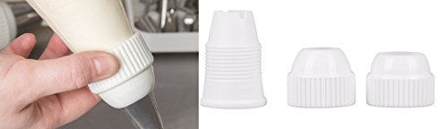 - THE COUPLERS IN THIS KIT ALLOWS FOR EASY CHANGE OF THE MEDIUM AND LARGE 6 PIECE PASTRY TUBES that come with this kit for different designs and shapes with the same filling. Having the 3 Pc. medium (402) 7/8" coupler ring accommodates 3/16", 1/4", and 5/16" pastry tubes. The 1" coupler ring accommodates 3/8", 7/16", and 1/2" pastry tubes. The 2 Pc. large (404) accommodates 9/16", 5/8", and 11/16" pastry tubes.