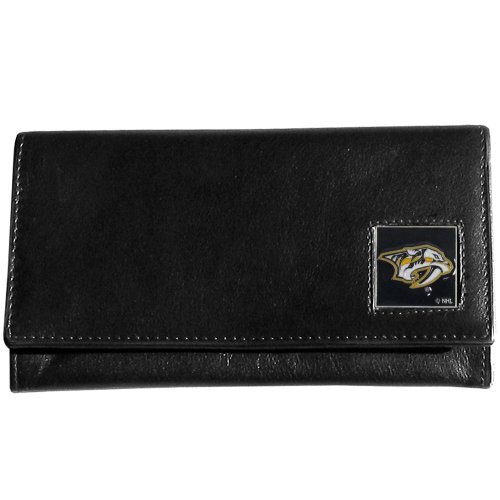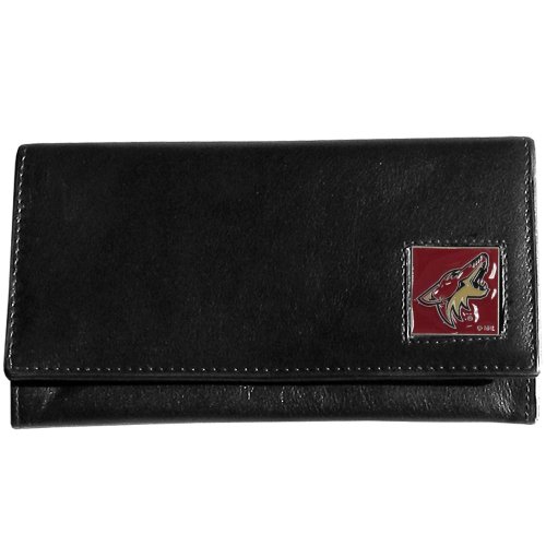 Our officially licensed NHL genuine leather women's pocketbook features 9 credit card slots, a windowed ID slot, spacious front pocket, inner pocket and zippered coin pocket. The front of the pocketbook has a hand painted metal square with the Maple Leafs emblem on the front.Feature