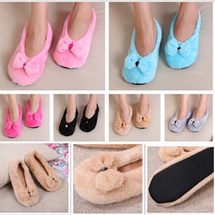 Lovely Lady Home Floor Soft Slippers Women Slippers Outsole Cotton-Padded Bow Shoes female Cashmere Warm Cartoon Shoes 4 Style