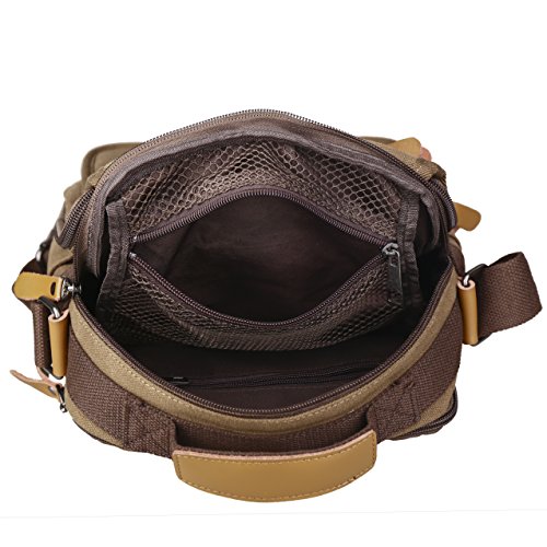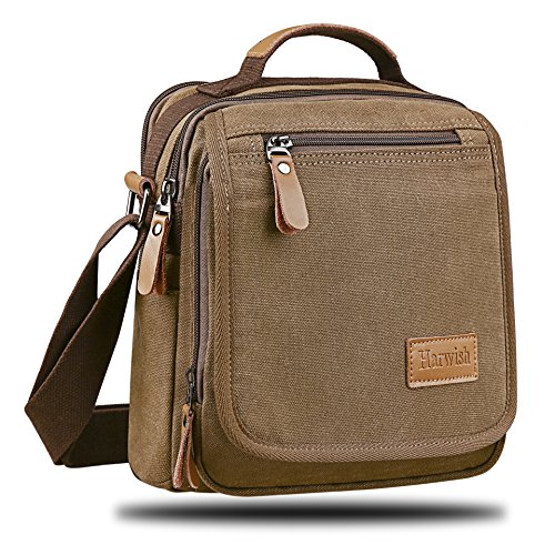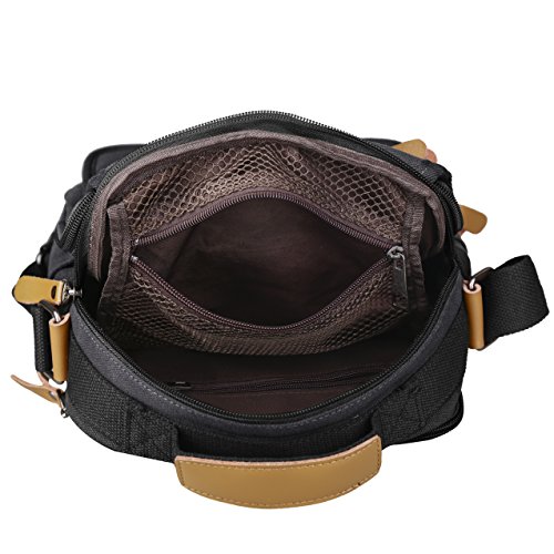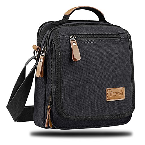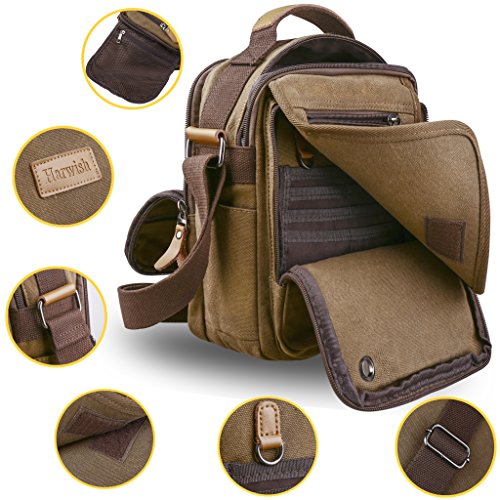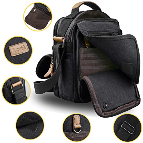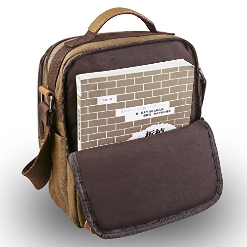 - Scientific and reasonable pocket lining design make your items lay in the bag systematically. There is a hole with a grommet to run your headphones through. - Freely adjustable shoulder strap buckle, you can adjust it according to your height and comfort requirements. - There is a handle on the top of the messenger, it can be used as a tote bag. - Casual life style and multifunction design,general used for student, women and men, perfect bag for school, office, outdoor, traveling or other daily use. What you can put in this Canvas Cross Body Messenger Bag? - A5 books, ipad(up to 10"), glasses, wallet, keys, cell phone, umbrella,cigaret,card,makeup,your daily-use small stuff, etc. Basic Informations: Dimensions(LxWxH): 9" x 5" x 11" Net weight: about 1.35lb How to maintain the canvas bag? - Wash it with clean water in ordinary temperature. - DO NOT wash it with hot water and alkaline detergent. - Hang to dry and store in ventilated place instead of sun exposure. - Wash Separetely to avoid staining. Package includes: - 1 * Messenger Bag 0