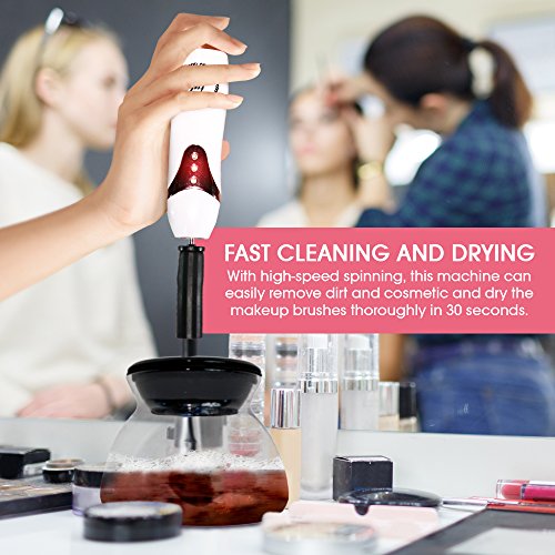 CLEAN AND DRY MAKEUP BRUSHES IN 30 SECONDS: Our time saving and effective brush cleaner allows you to easily clean and dry your brushes in only 30 seconds! Normally, it would take 24 hours for a makeup brush to dry after spending lots of time cleaning each brush. Cleaning and drying makeup brushes is no longer time consuming with this Brush Cleaner and Dryer system so that you can keep your makeup brushes bacteria and residue free with minimal time and effort!