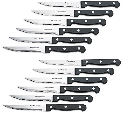 Steak Knives - 12 Pc Superior Steak knives, Stainless Steel, Steak Knife for Chefs, Commercial Kitchen, - Great For BBQ, Weddings, Dinners, Parties, All Homes & Kitchens - By Kitch N’ Wares