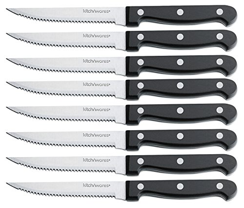 - MASTERFUL DESIGN: Kitch N’ Wares Steak Knives Are Crafted From A Single Piece Of Stain-Resistant Steel. Each Knife In This Steak Knives Set Is Weighted Perfectly Allowing For Improved Balance And Control When Cutting. Micro-Serrated Edges Guarantee They Never Need Sharpening, Effortless Slicing And Reliable, Long-Lasting Performance.