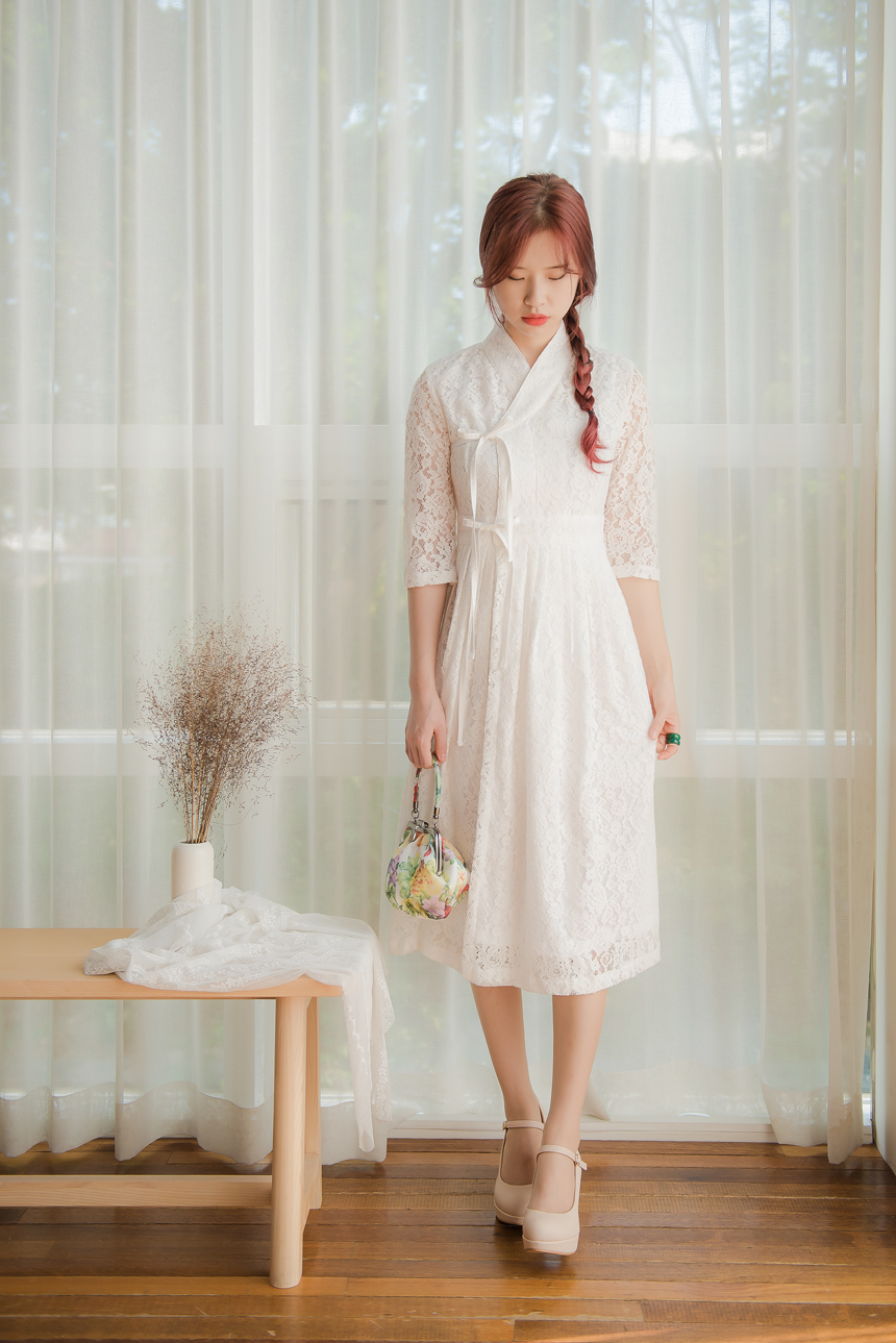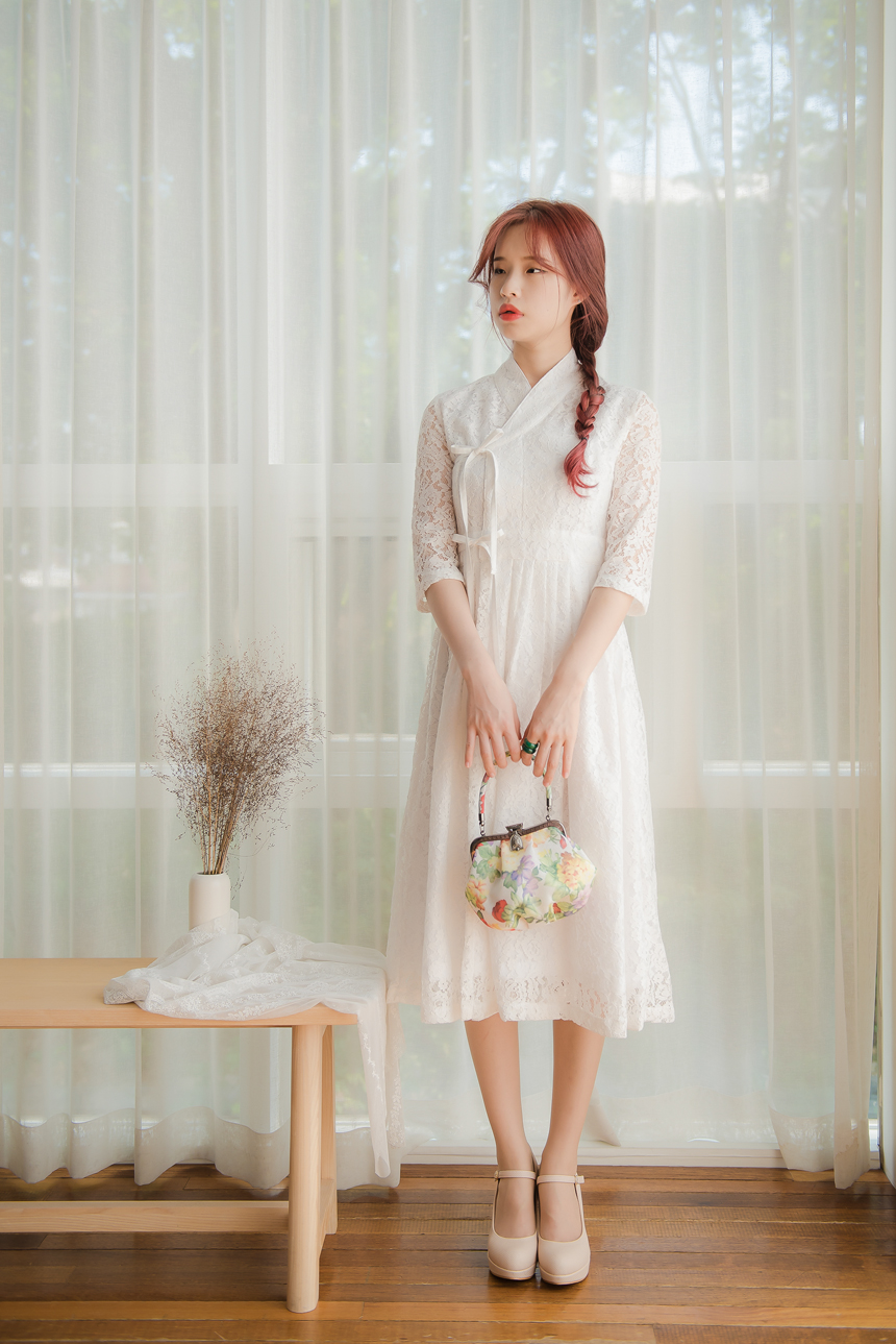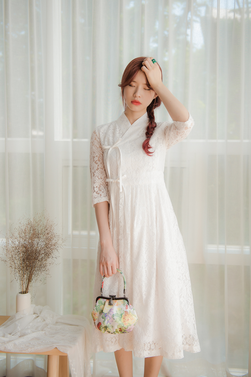 꽃닮의 베스트상품! 시그니쳐 디자인 레이스 철릭원피스가 시즌에 맞는 7부로 새롭게 디자인되었습니다.