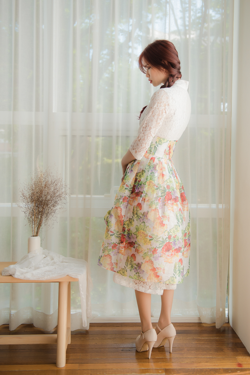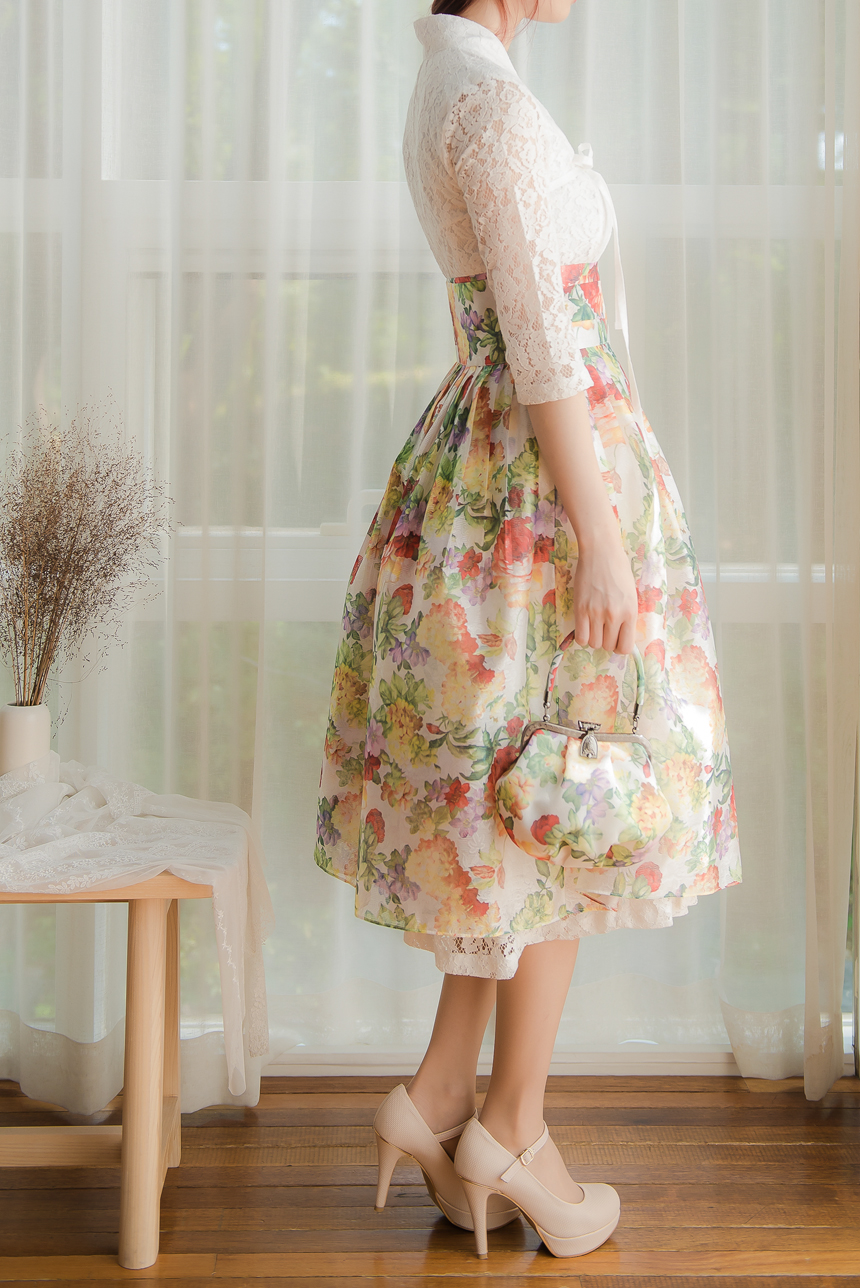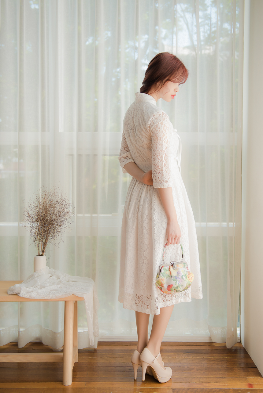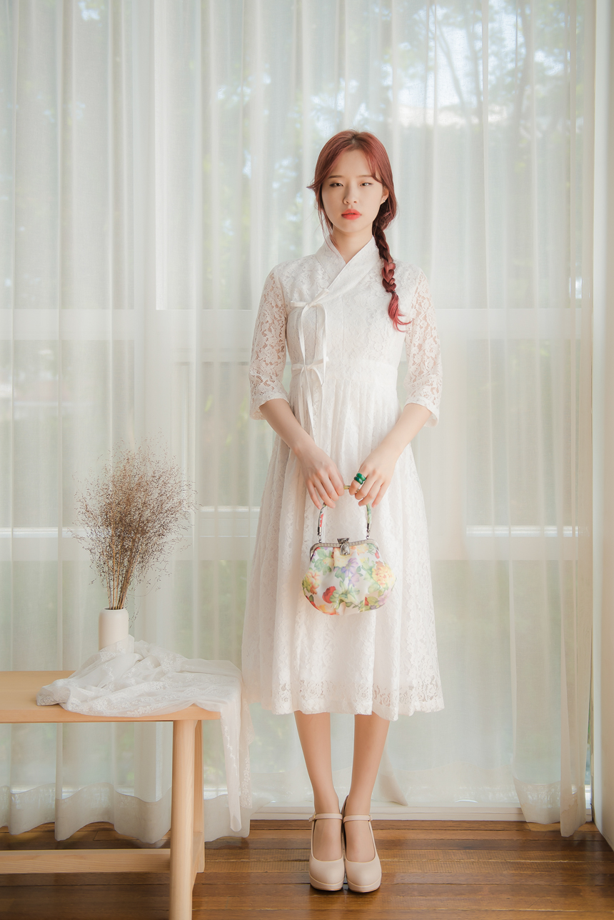 꽃닮의 베스트상품! 시그니쳐 디자인 레이스 철릭원피스가 시즌에 맞는 7부로 새롭게 디자인되었습니다.