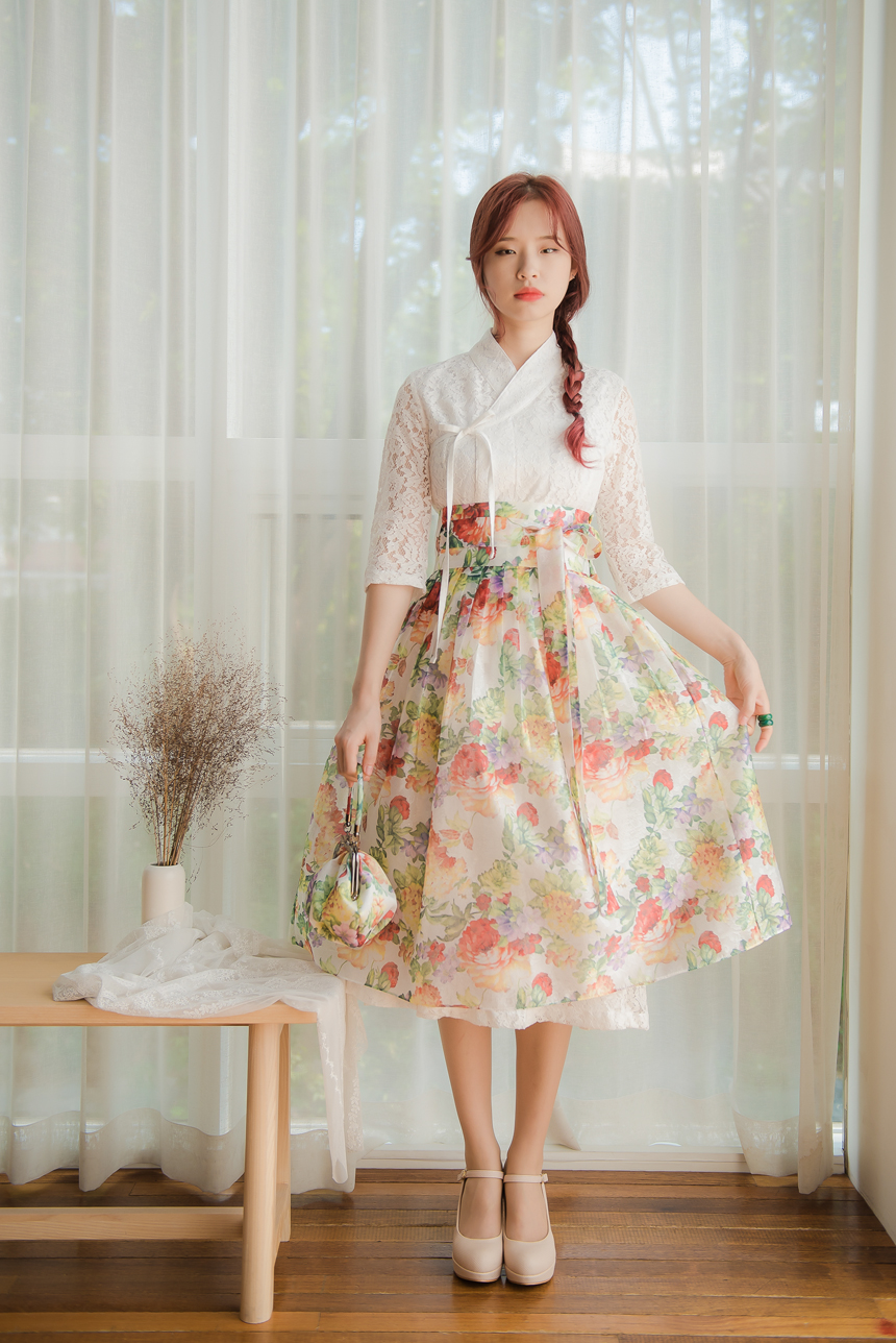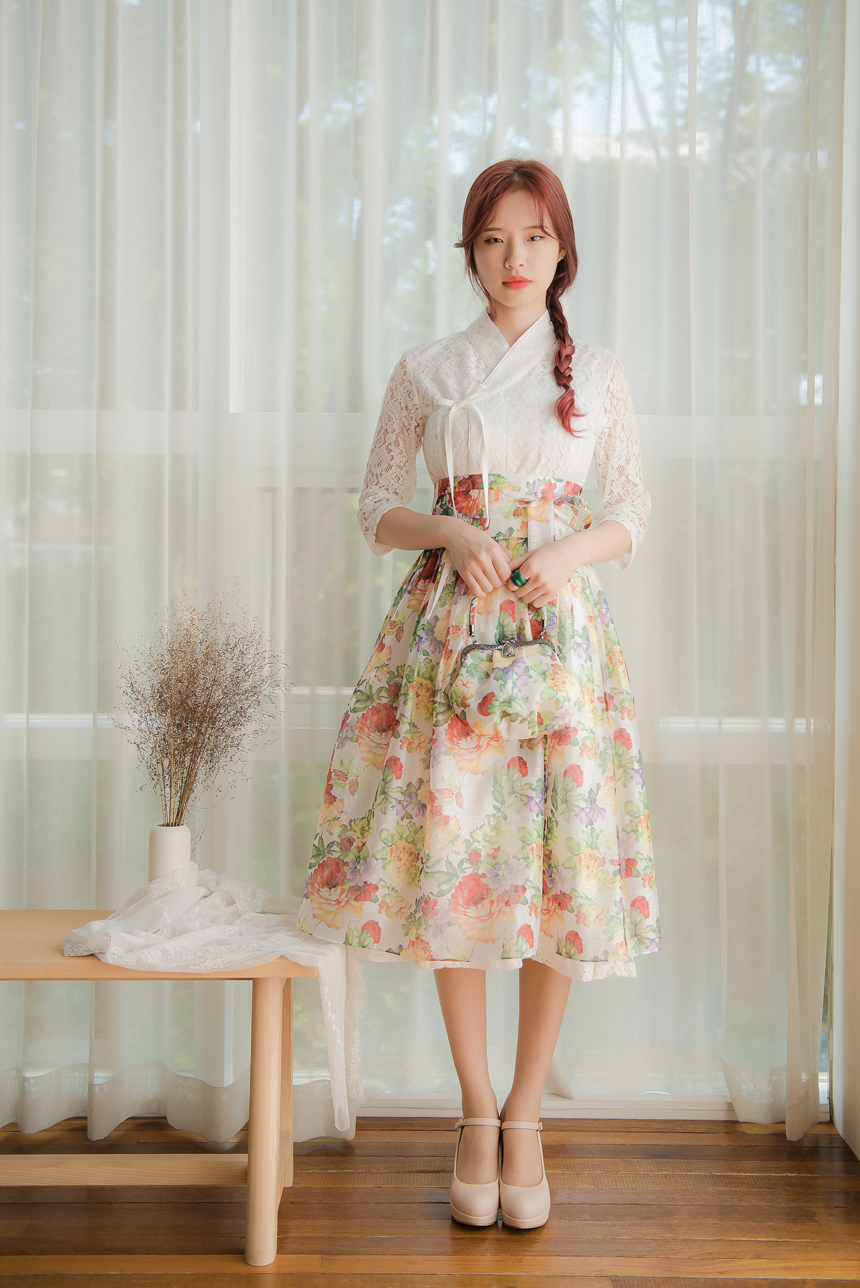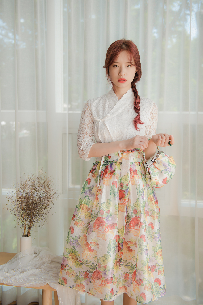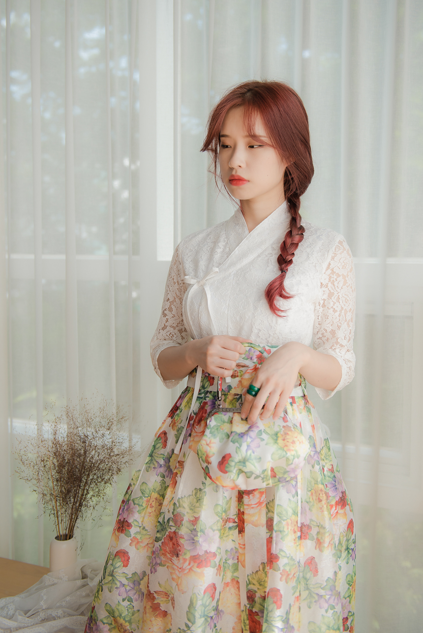 꽃닮의 시그니처 디자인인 시스루 덧치마와 함께 코디하셔서 청초하고 신비로운 꽃닮룩을 즐겨주세요!