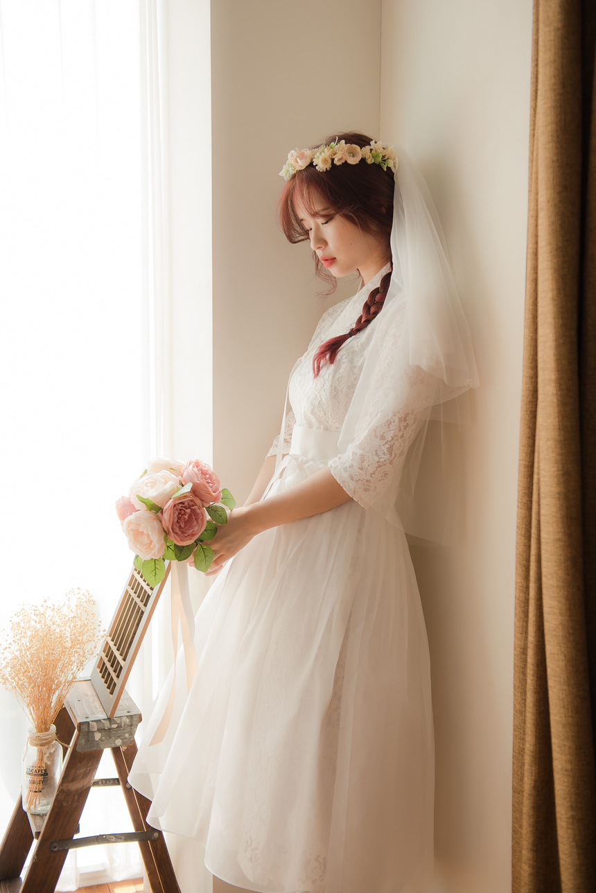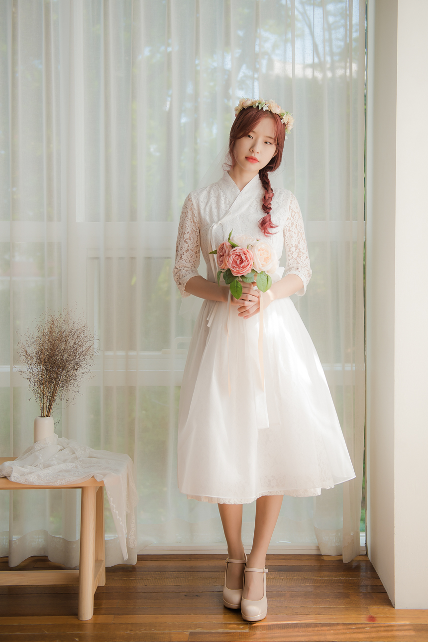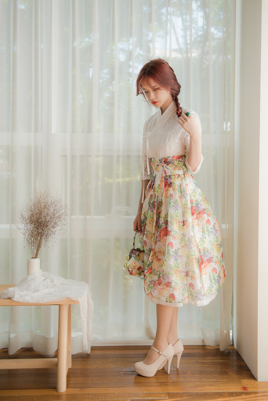 *아래사진은 꽃닮 시스루 덧치마 화이트와 함께 코디한 참고컷입니다.