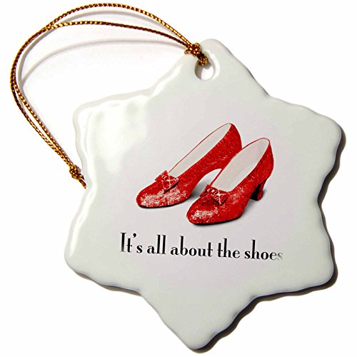 3dRose orn_108339_1 Its all About The Shoes, Ruby Slippers Wizard of Oz Snowflake Porcelain Ornament, 3-Inch