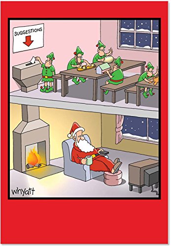 B1665 Box Set of 12 Santa Suggestion Box Hilarious Christmas Paper Cards with Envelopes