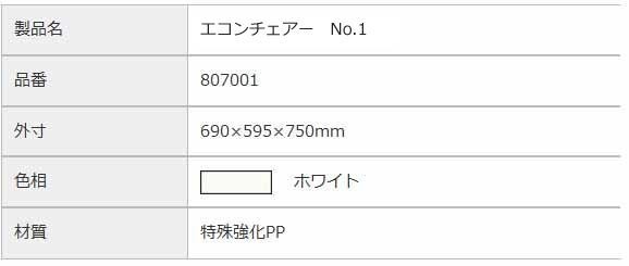 お庭やプールサイド、アウトドア等にピッタリのプラスチック製チェアーです。重ねて収納OK!! 製造国:日本 ※サプライヤー直送品 ご注文後2~3営業日後の出荷となります【商品名】三甲 サンコー エコンチェアー No.1 ホワイト 807001