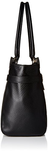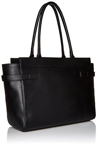 -. Feature : Top-handle tote in grained leather with belted leather strap detail and metallic hardware