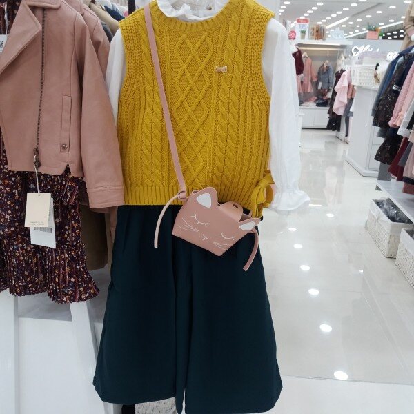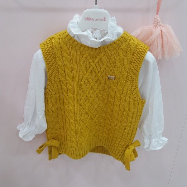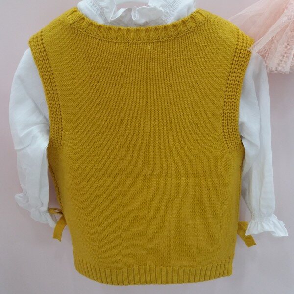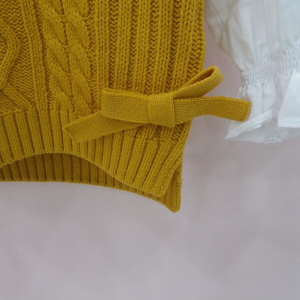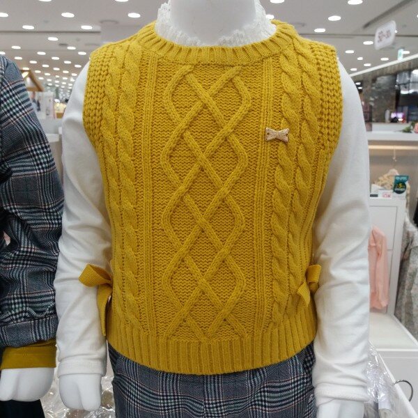꽈베기니트 모양으로 밑단에 리본도 달아 깜찍함으로 원피스 블라우스에 겹쳐입기 넘 예쁩니다~~