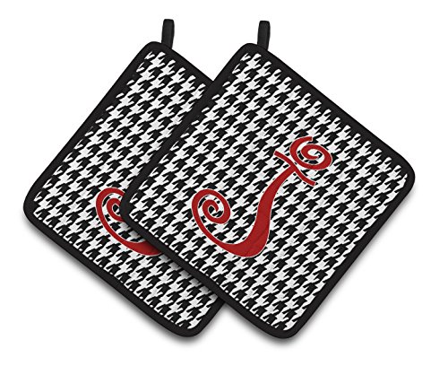 Caroline's Treasures Monogram Initial J Houndstooth black Pair of Pot Holders CJ1035-JPTHD, 7.5HX7.5W, Multicolor