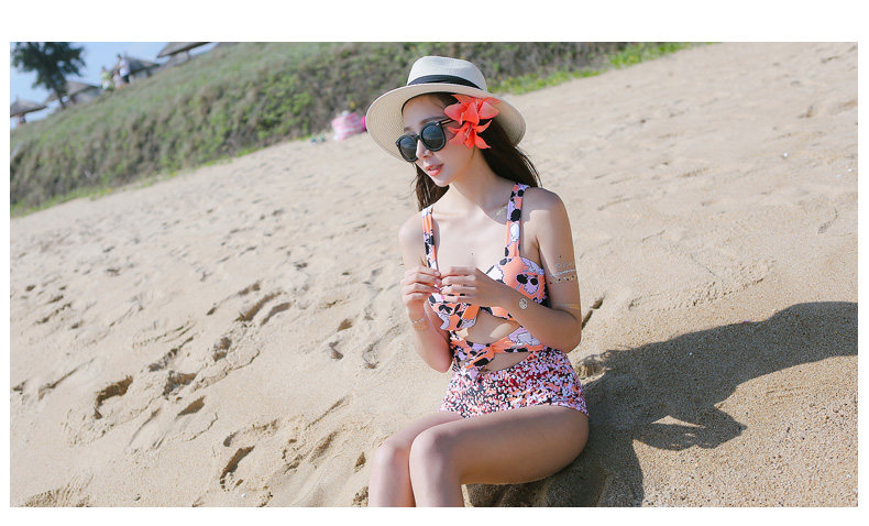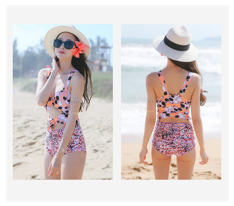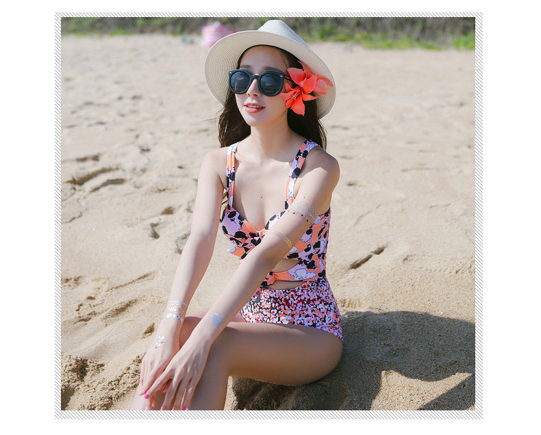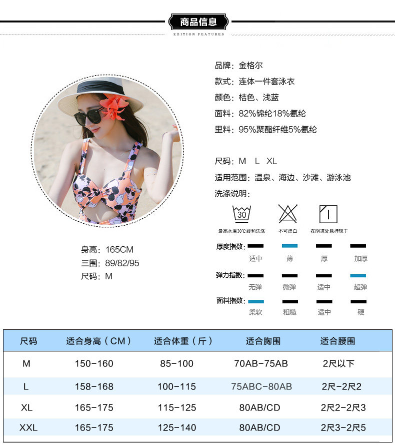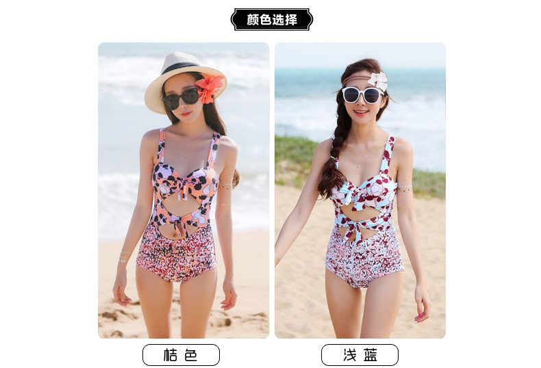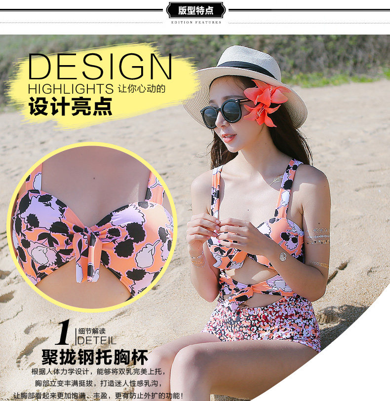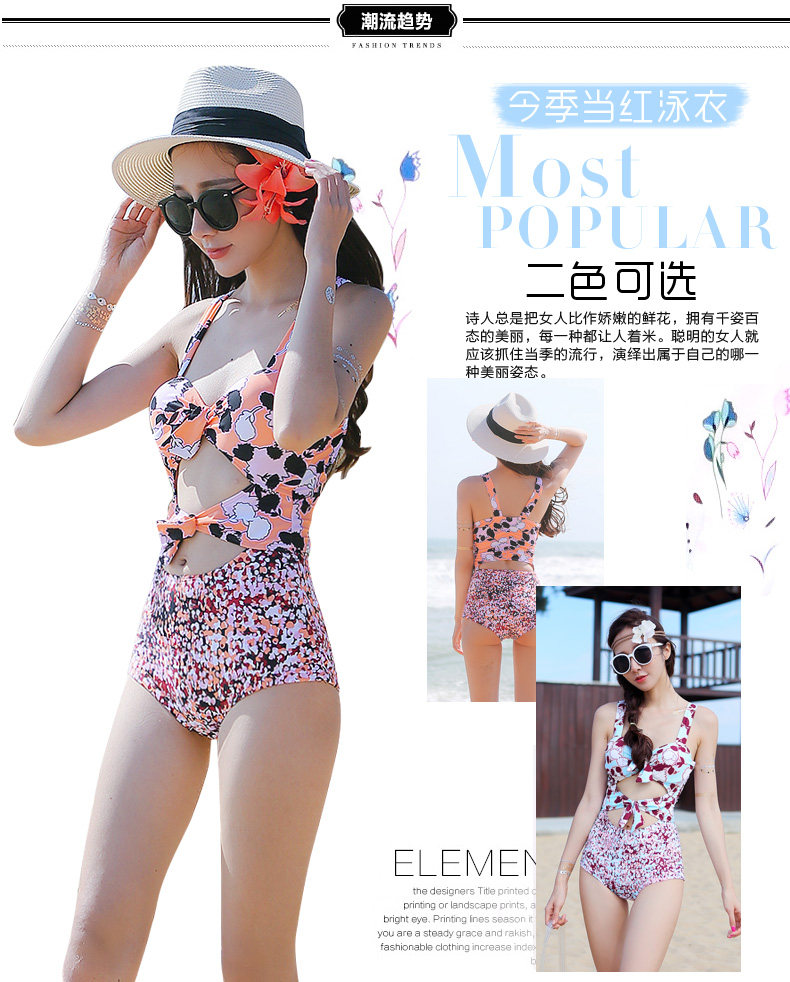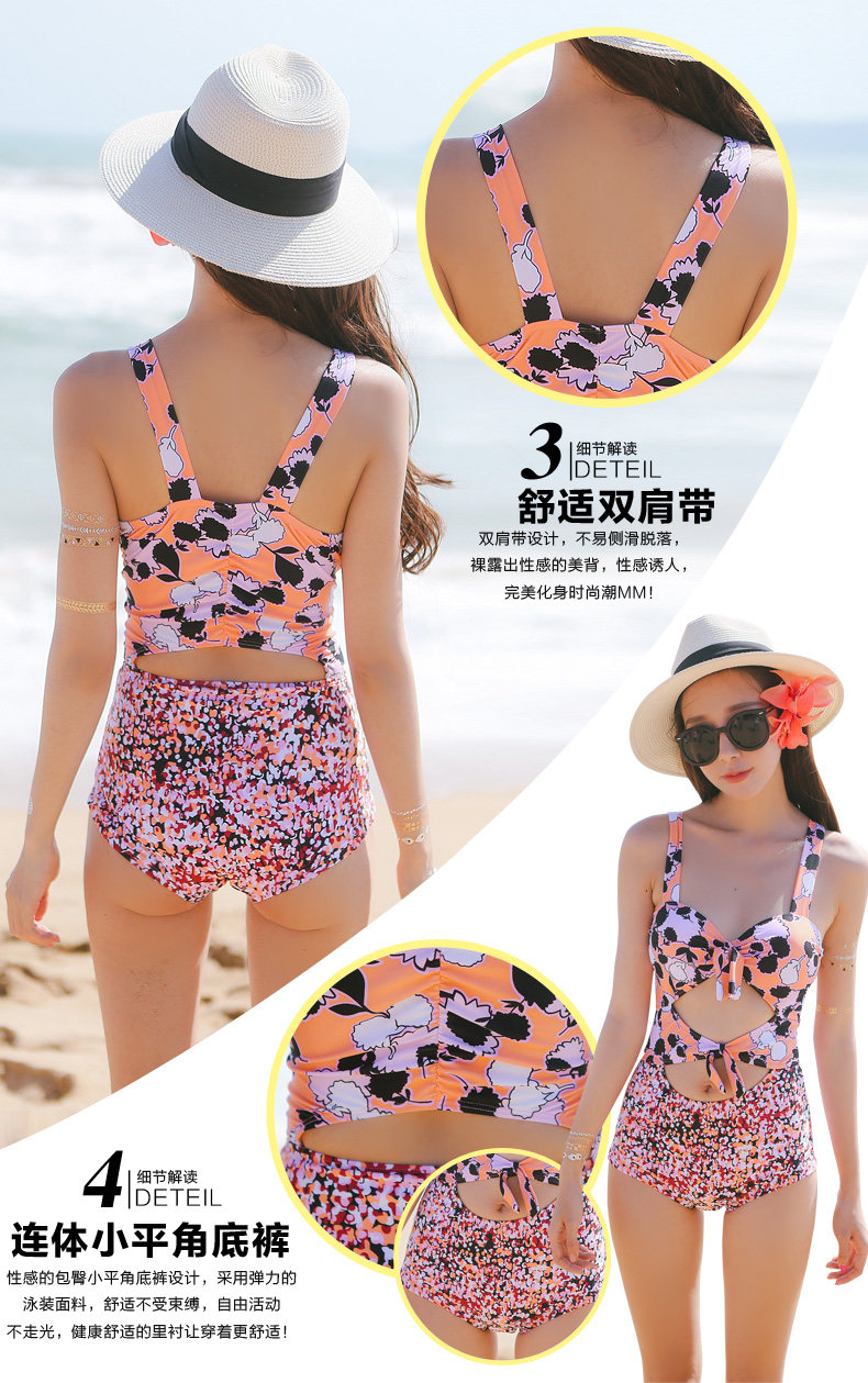 夏季新款连体平角泳衣 时尚性感钢托聚拢修身显瘦保守印花游泳衣