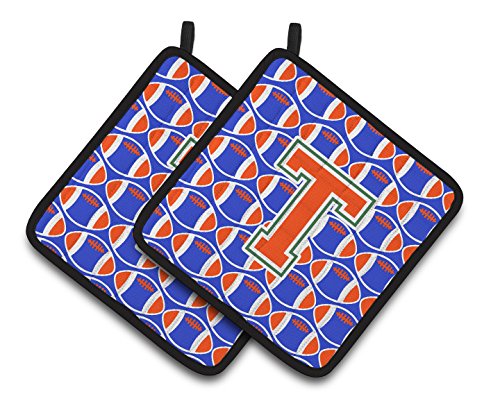 Caroline's Treasures Letter T Football green, Blue & Orange Pair of Pot Holders CJ1083-TPTHD, 7.5HX7.5W, Multicolor