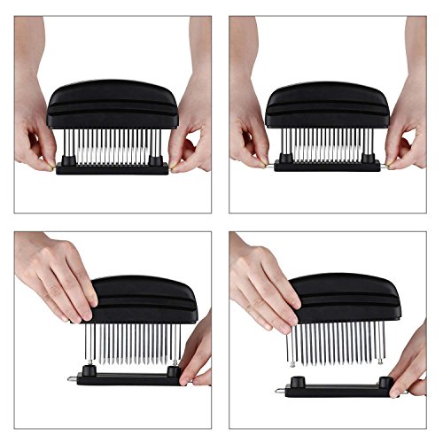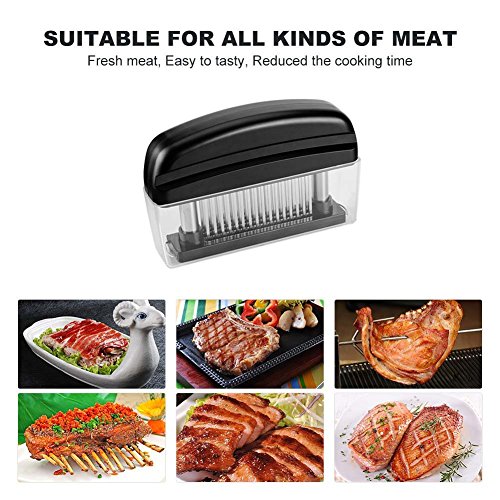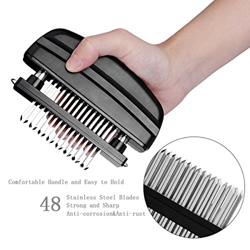100% SATISFACTION GUARANTEED - Your Satisfaction is our TOP Priority! We are dedicated to address any product service issues and committed to deliver a 5 Star experience for all buyers. Please feel free to contact me if you have any concerns at all. Features * 48 stainless steel high quality blades for precise tenderizing. * Food grade ABS plastic body and lid. * Easy open function for quick cleanup. * Indispensable for daily life which can shorten the cooking time. * Suitable for home kitchen, hotel, restaurant and so on. Specification * Function: Save time and money by making all different cuts of meat tender * Size: 5.9" x 1.3" x 4.3" * Material: food grade ABS plastic and stainless steel * Weight: 11ounces * Color: black Tips * This product is very sharp. Keep away from children. * Clean after each use . * As with all kitchen items, use with care. 0 |