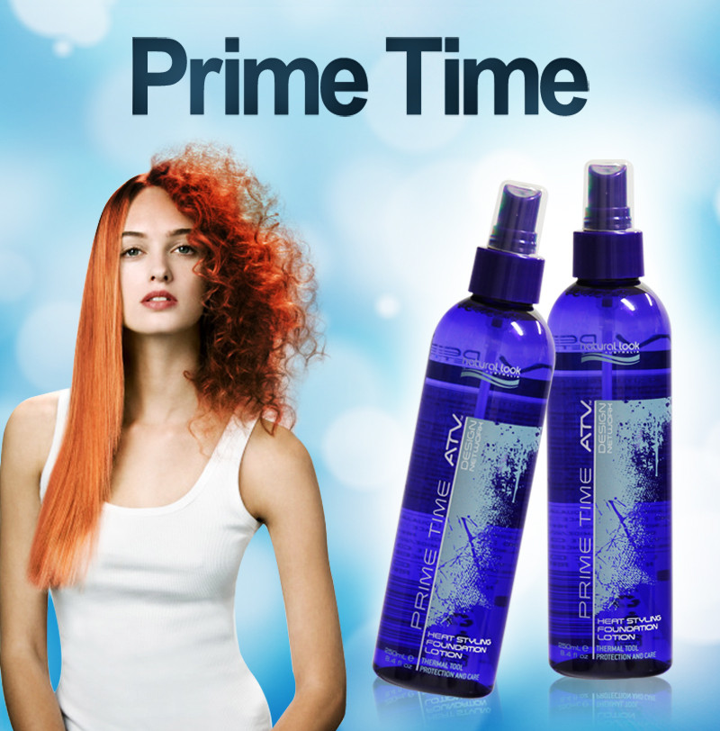 PRIME TIME STYLING FOUNDATION LOTION IS A UNIQUELY FORMULATED MEMBER OF THE ATV DESIGN NETWORK CREATED ESPECIALLY TO PROVIDE LASTING BODY AND ROOT SUPPORT TO A MYRIAD OF HAIR STYLING OPTIONS.PRIME TIME WILL PROTECT THE HAIR FROM THE HARMFUL EFFECTS OF STRAIGHTENING IRONS TO 230ºC, CURLING TONGS, BLOW DRYER AND CONTINUAL ROLLER SETTING.