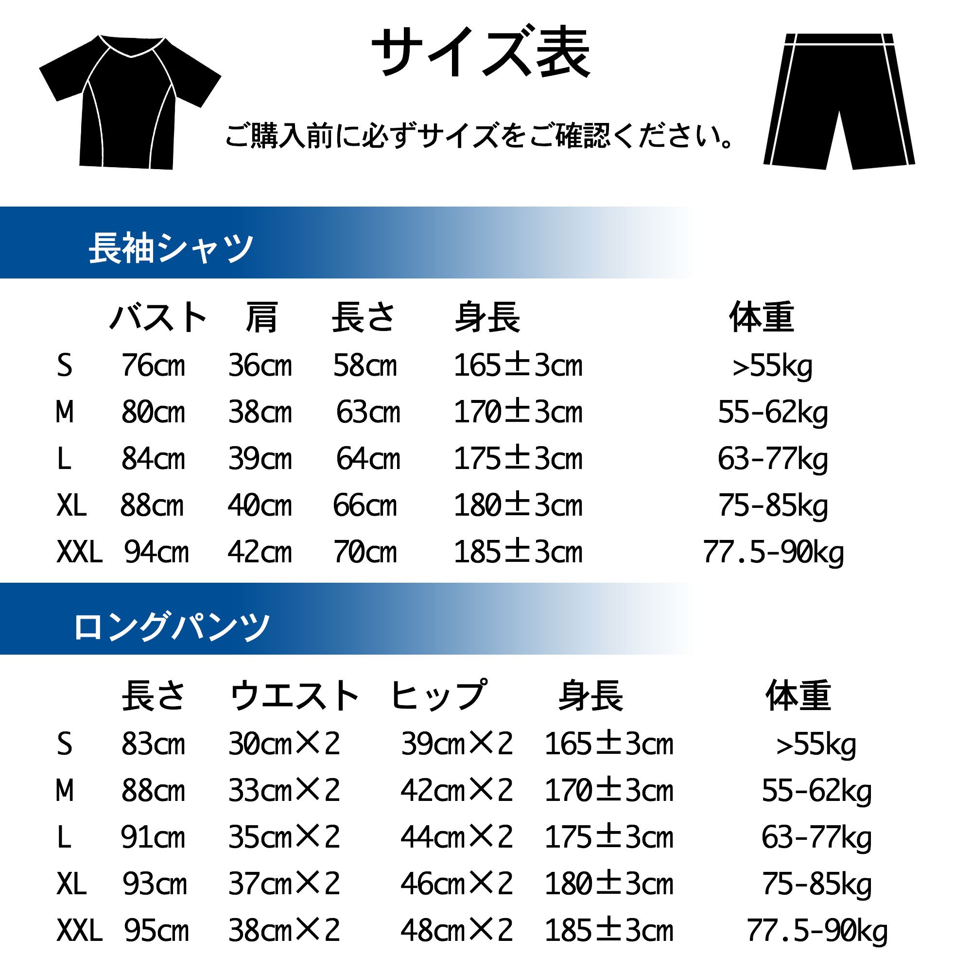 XXL / Length: 185 ± 3 cm, Weight: 70 to 80 kg, Waist: 38 cm × 2, Hip: 48 cm × 2
