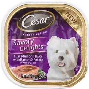 Cesar Wet Dog Food Bundle, 3.5 oz (Pack of 8) includes 2-Cups Filet Mignon Flavor with Bacon & Potato, Filet Mignon Flavor, New York Strip Flavor, Rotisserie Chicken Flavor w/ Bacon & CheeseFeature
