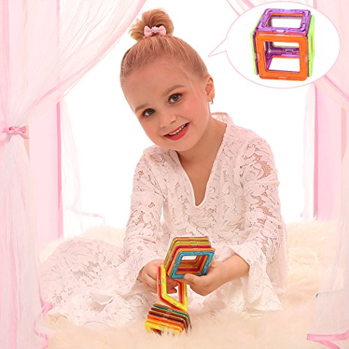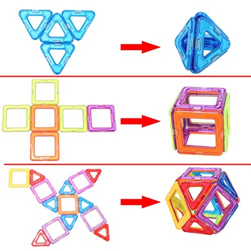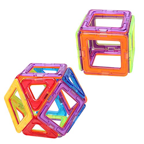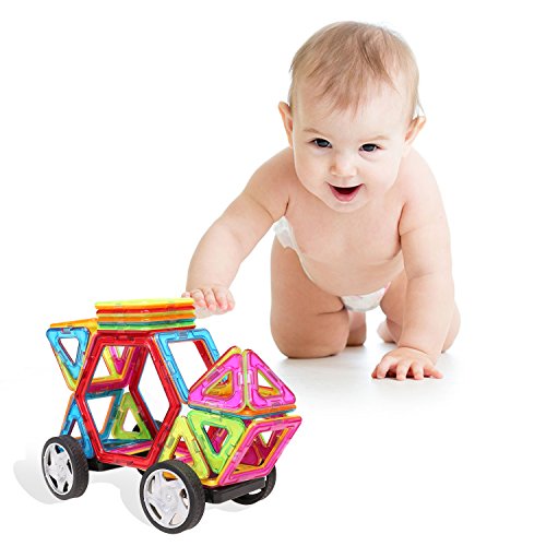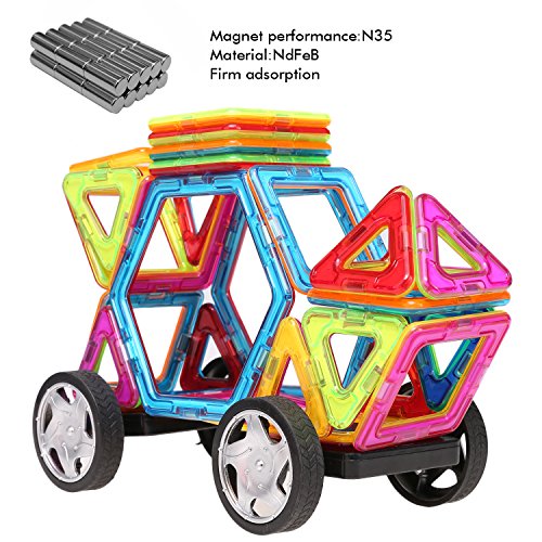 -. Feature : UNLIMITED FUN: Hount 40PCS magnetic blocks toy set which comes in a beautiful variety of magnetic tiles colors that appeal to boys and girls of all ages,can be combined into Many patterns, such as: House, rocket,Train, tortoise, ball and more. / The magnetic buliding blocks with power megnetic tiles and vibrant rainbow colors that can easy connect to DIY building models as children like. / Totally 40pcs : The Magnetic Build Blocks Set include 12 x Triangles, 18 x Squares, 2 x hexagon, 2 x wheel and 6 x card. The set includes with an idea book which will help to come up with new things to build. / Improve children's intelligence : This magnetic building block intelligent magnetic construction set for brain development. With those magnetic construction pieces, children and kids can DIY create hundreds of kinds of 2D plane shapes or 3D geometric structures or models for playing. Helps children acquire strong sense of color, geometrical shapes including 3D forms numbers counts, magnetic polars. / Safety and High Quality: The Magnetic Building Blocks is made from non-toxic ,High quality abs plastic conform to CE, ASTM and EN74.Smooth edge of each tile will never hurt baby's little hands.