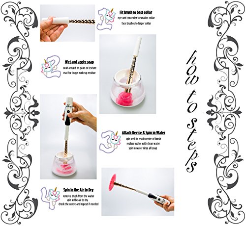 UnicornBasix makeup brush cleaner kit - professional, cute, small and easy daily use or for travel, for any natural or synthetic brushes including eye, face and...