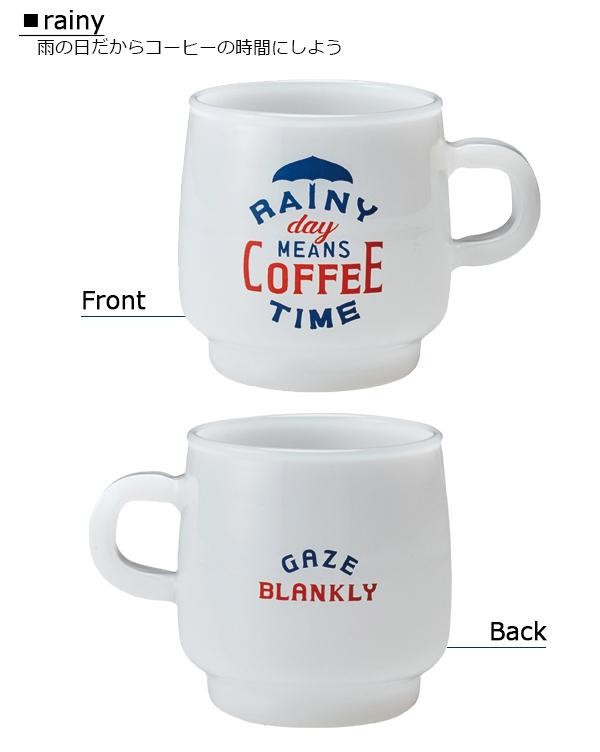 ヴィンテージ感漂うミルク色の耐熱ガラスマグにサインペイントを施しました。店の看板やウィンドウに直接描くサインペインティングは、古くからアメリカで親しまれている技法。フリーハンドならではの個性を感じるデザインには、コーヒーの時間をリラックスしながら愉しんで欲しいという想いが込められています。スタッキングできる形状で省スペースに収納できます。 |