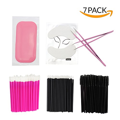 Disposable Makeup Brushes Tool Set for Eyelash Extensions,with free Glue Ring Cups and Jade Stone (7 Pack)