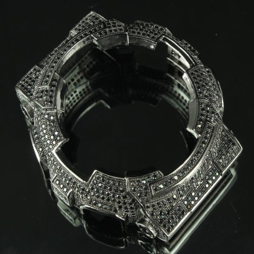 -. Title : Iced Out Custom G Shock Bezel Black Lab Diamond Sleek Watch Case Gold Finish New