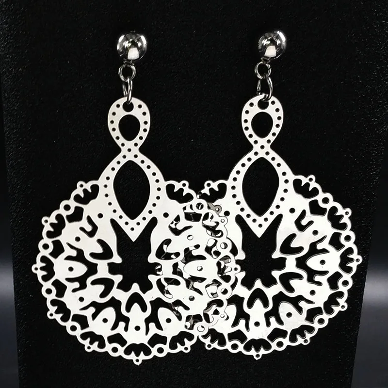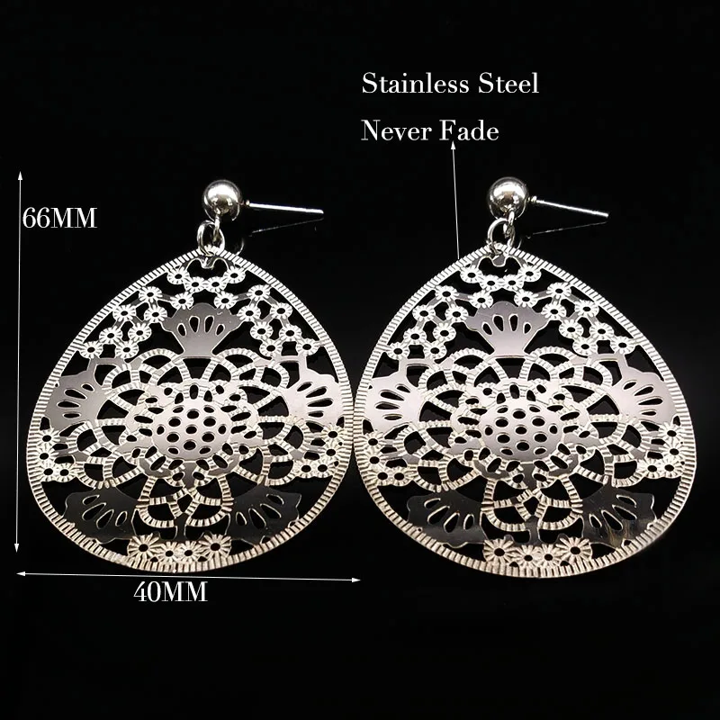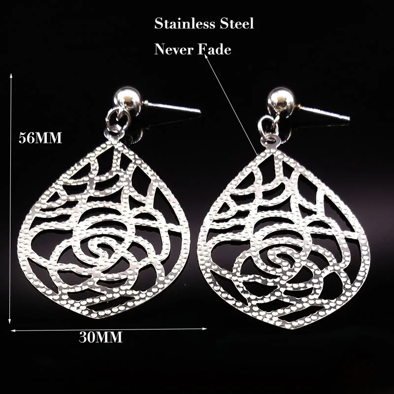 Metals Type:2017 Fashion Flower Stainless Steel Earrings