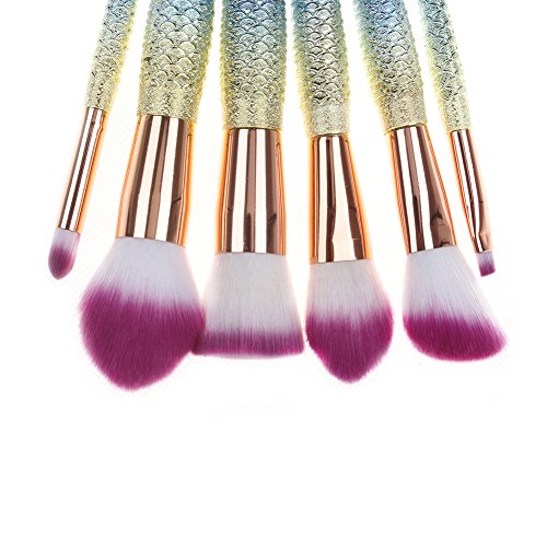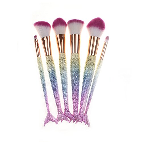 6Pcs Mermaid Makeup Brush Set Synthetic Foundation Blending Blush Eyeliner Face Powder Brush Makeup Brush Multiple Color Gradient
